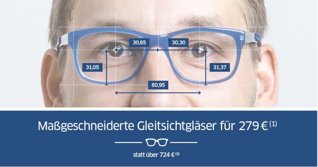 ✓ Lassen Sie ihre vorhandene Brille mit individuellen Gleitsichtgläsern der neuesten Technologie der optischen Entwicklungslabore verglasen und sparen Sie bis zu 60% gegenüber ihrem Optiker.