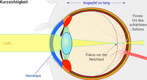 Kurzsichtigkeit vom Optiker erklärt Was ist Kurzsichtigkeit eigentlich? Kurzsichtigkeit oder Myopie bedeutet, dass die Länge des Augapfels und die Brechkraft der Linse nicht zusammenpassen. Eigentlich müsste bei entspanntem Ziliarmuskel und damit minimaler Brechkraft der Linse das Bild eines sich in der Entfernung befindenden Gegenstands auf der Netzhaut liegen. Bei einer vorliegenden Myopie liegt das Bild vor der Netzhaut. Dadurch sieht man...