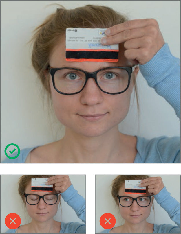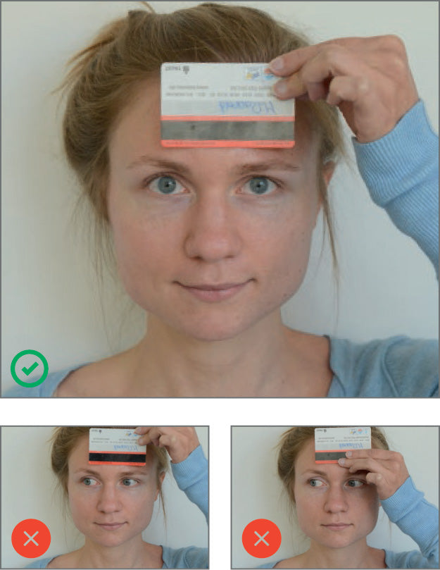 Um alle Abstände genau messen zu können benötigen wir von Ihnen ein Foto mit Brille und einer Scheckkarte auf welchem der Magnetstreifen komplett sichtbar ist. Der Magnetstreifen dient auf dem Foto als Maßstab um die Messeng durchzuführen.
